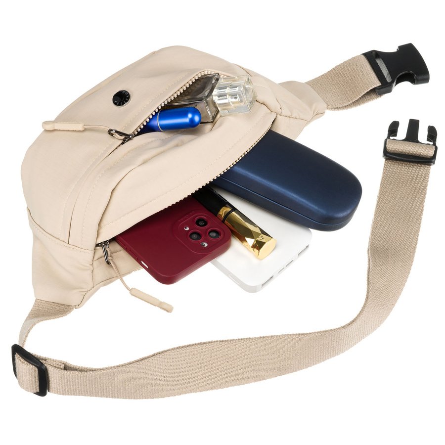 Beżowa, sportowa i praktyczna nerka damska z poliestru – Peterson