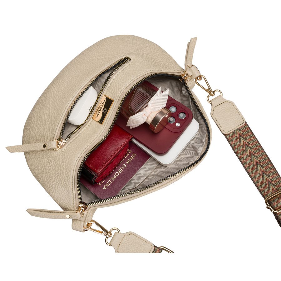 Saszetka damska ze skóry ekologicznej w beżowym kolorze, jednokomorowa i zamykana suwakiem – Peterson