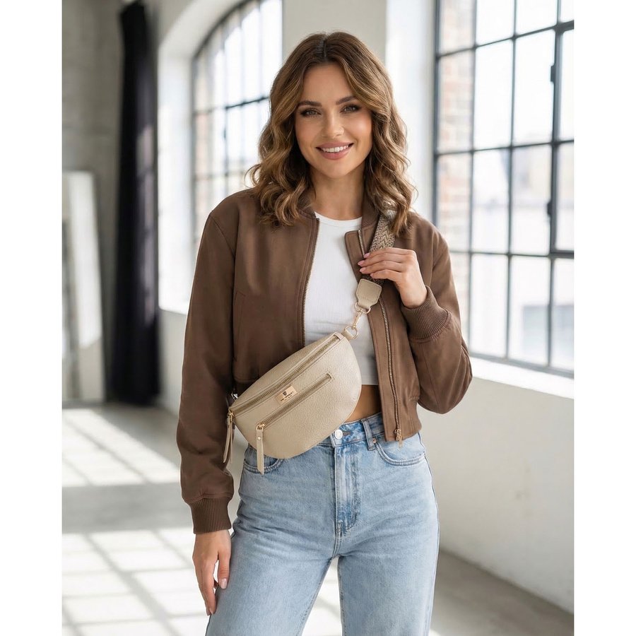 - Model wyposażono w szeroki, regulowany pasek o maksymalnej długości 140 cm, który pozwala dopasować torbę do sylwetki i preferowanego sposobu noszenia. Nerka może być noszona klasycznie w pasie lub wygodnie przez ramię jako saszetka typu crossbody.