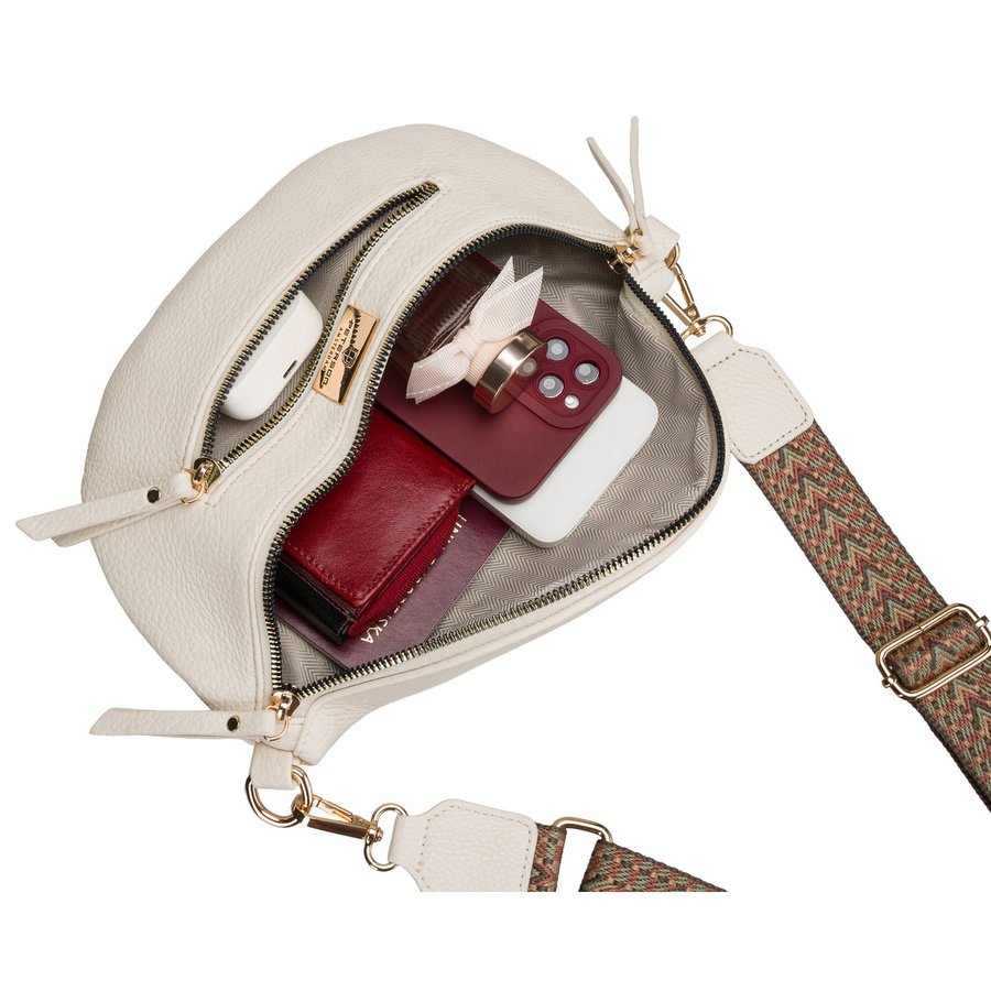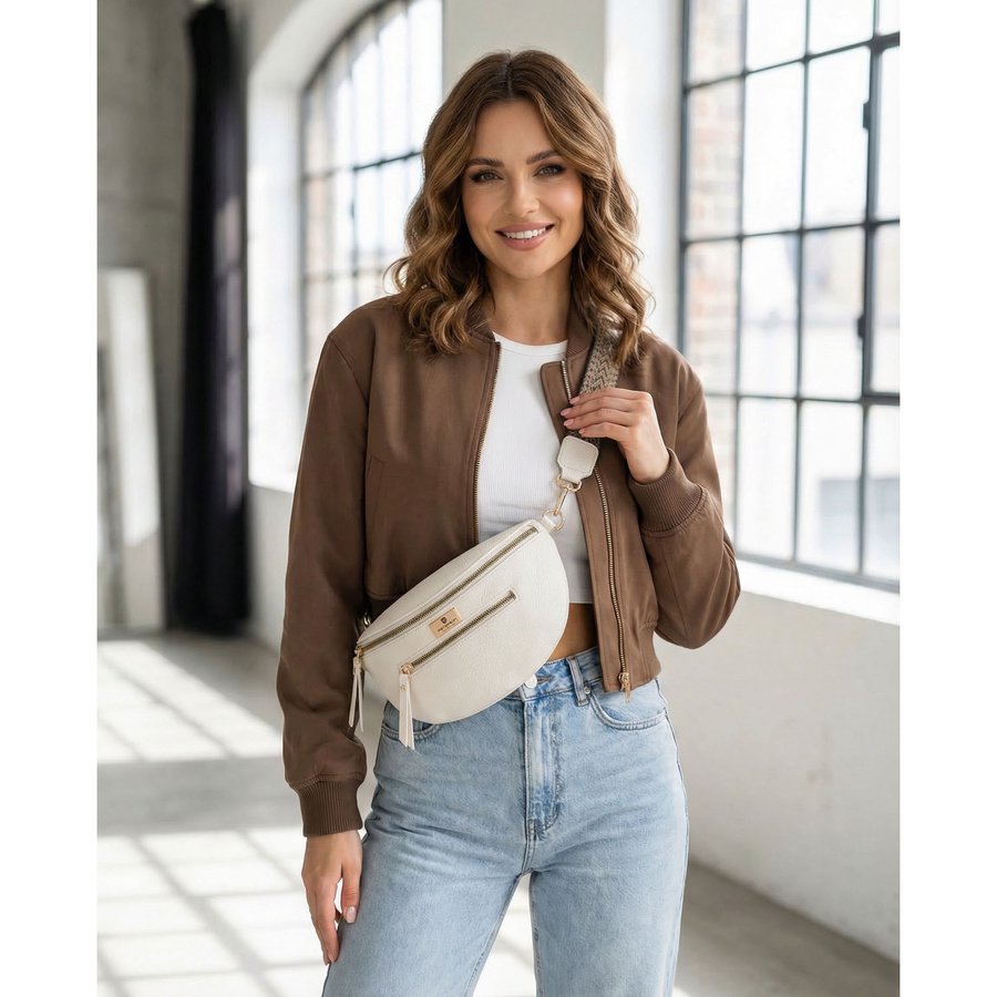 - Model wyposażono w szeroki, regulowany pasek o maksymalnej długości 140 cm, który pozwala dopasować torbę do sylwetki i preferowanego sposobu noszenia. Nerka może być noszona klasycznie w pasie lub wygodnie przez ramię jako saszetka typu crossbody.