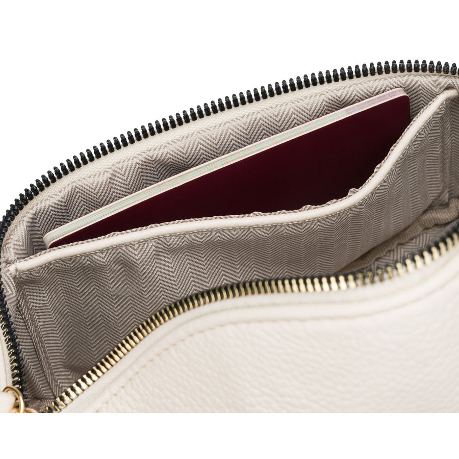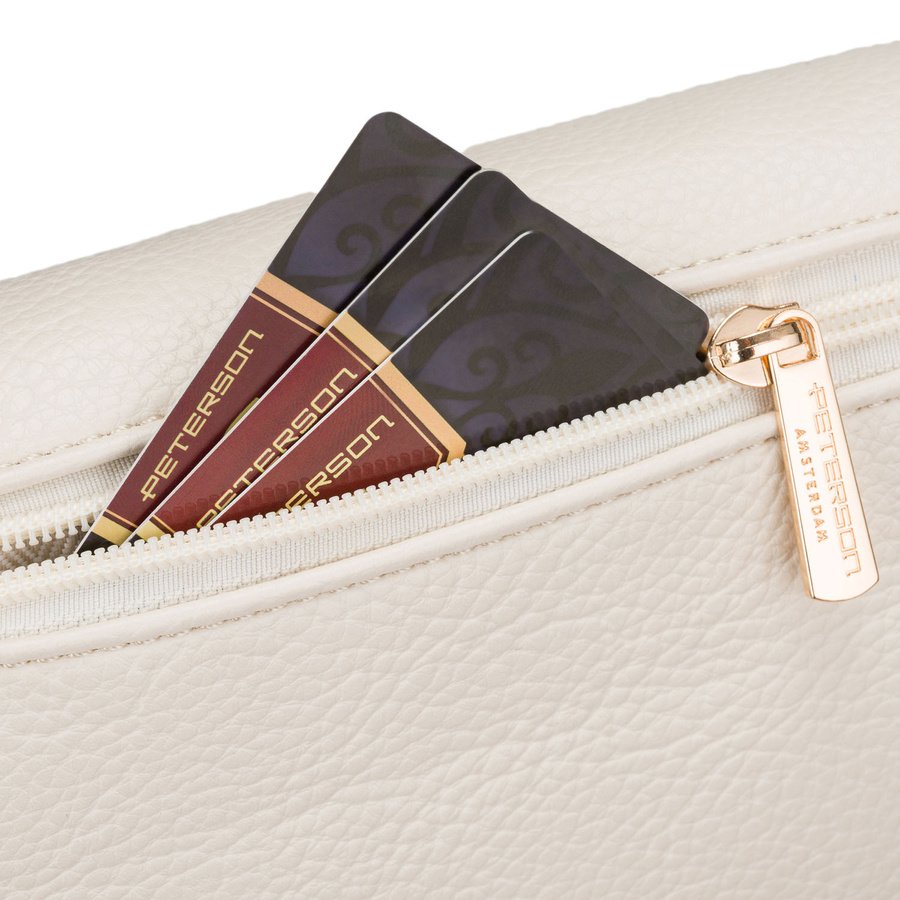 Saszetka damska ze skóry ekologicznej w jasnobeżowym kolorze, jednokomorowa – Peterson