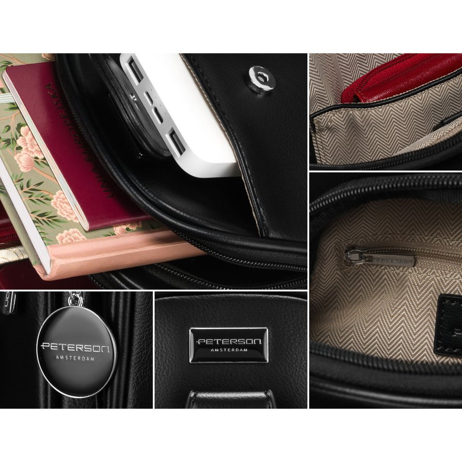 ❇️ Główną komorę z 2️⃣ kieszeniami – otwartą i zasuwaną.