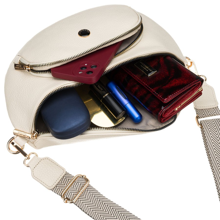 Jasnobeżowa nerka damska ze skóry ekologicznej zamykana suwakiem – Peterson