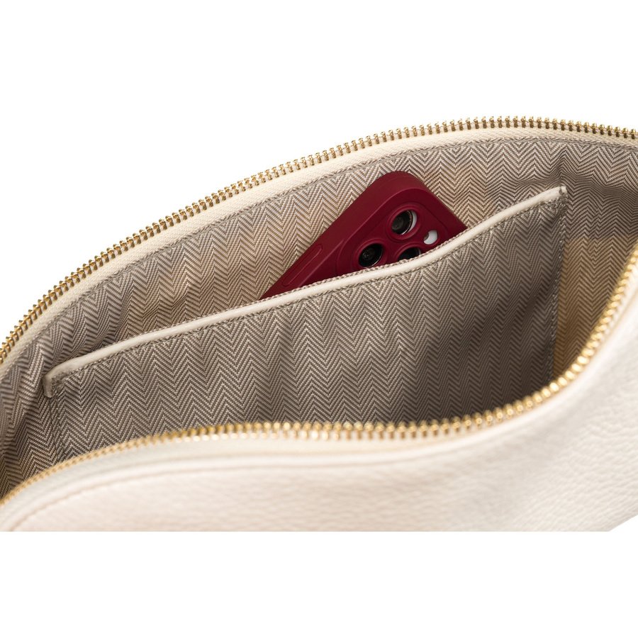 Choć wygląda zgrabnie, ta saszetka ma dużą komorę główną, która bez problemu pomieści telefon, portfel, klucze, kosmetyki i inne niezbędniki. Wewnątrz znajdziesz dwie kieszonki, a z tyłu dodatkową – idealną na drobiazgi wymagające szybkiego dostępu.