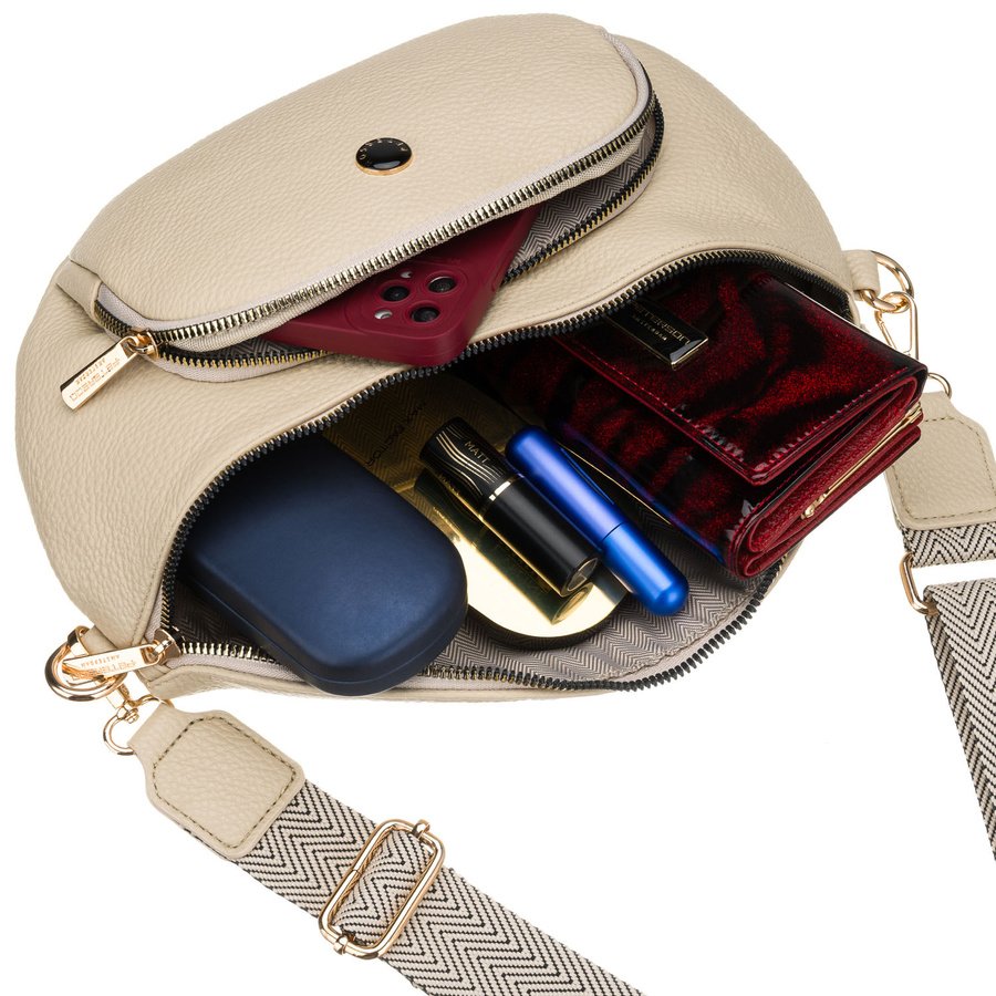 Miejska nerka damska ze skóry ekologicznej w beżowym kolorze zamykana suwakiem – Peterson