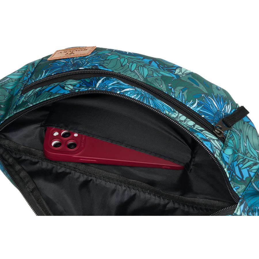 Saszetka posiada 1 klasyczna obszerną komorę zamykaną na suwak, w której znajduje się 1 dodatkowa otwarta kieszeń. Na zewnątrz znajdują się 3 dodatkowe kieszenie zamykane na suwak – 2 na froncie i 1 na rewersie.