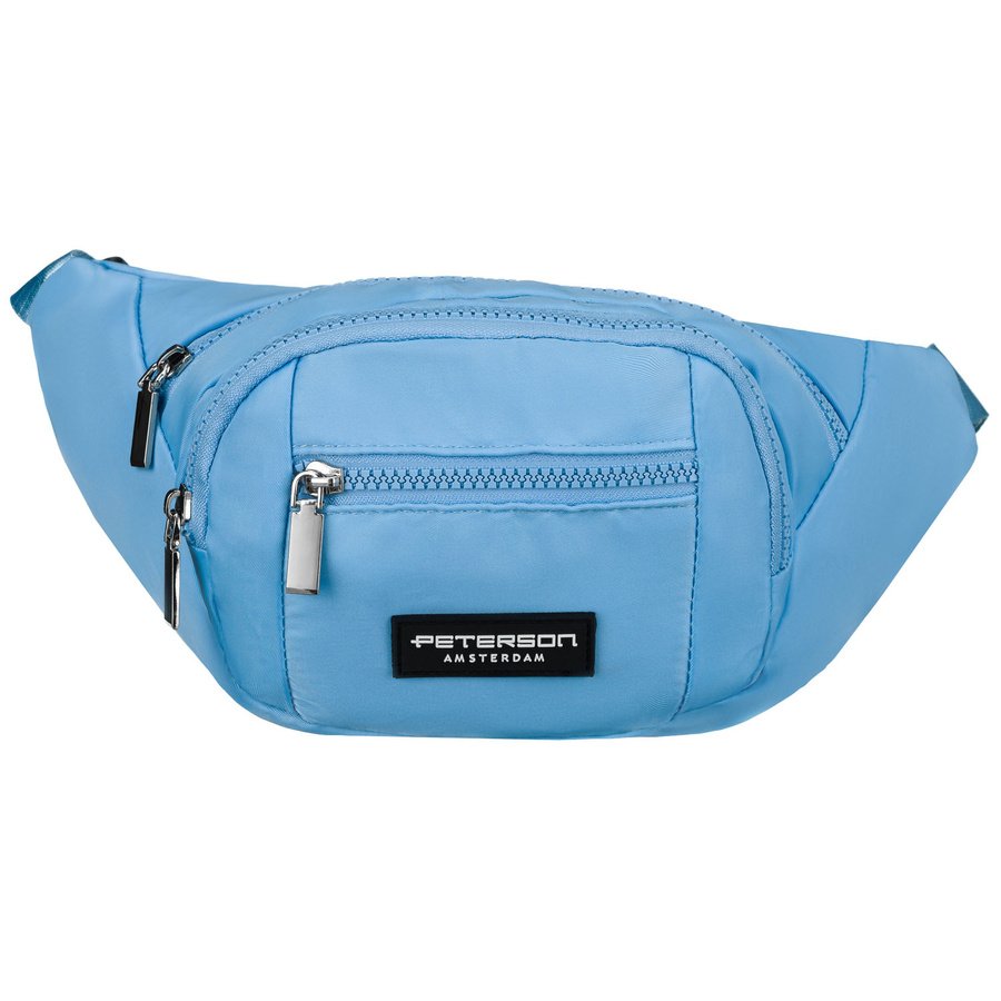 Niebieska saszetka sportowa wykonana z poliestru, zamykana na suwak – Peterson