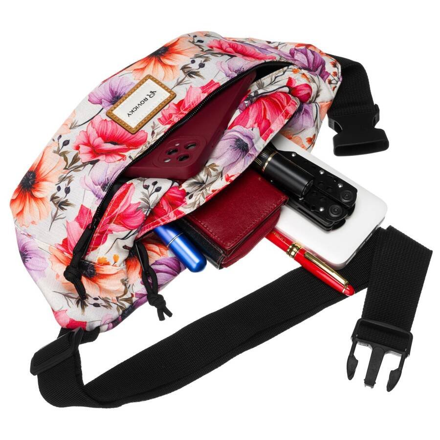 Kwiatowy wzór to doskonały wybór dla kobiet ceniących styl i wygodę. Pasuje zarówno do sportowych, jak i casualowych stylizacji, nadając im kobiecego charakteru. Nerka Rovicky®️ sprawdzi się podczas wyjść na miasto, wakacyjnych spacerów czy w podróży – wszędzie tam, gdzie liczy się komfort i swoboda.