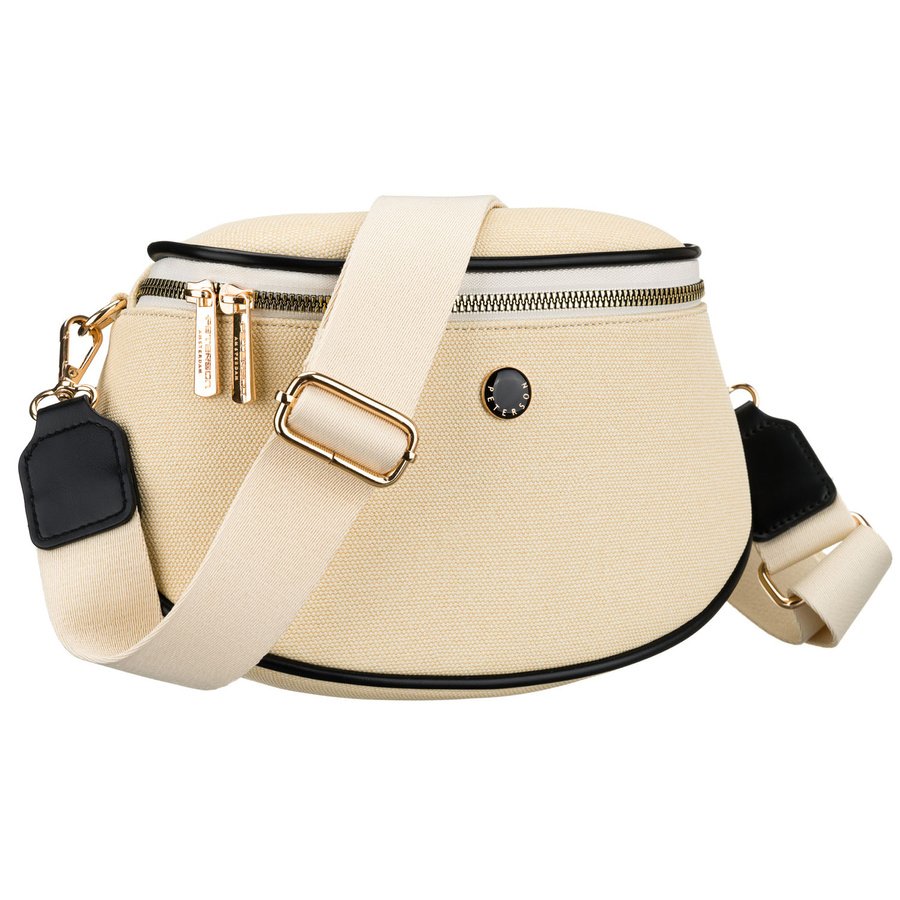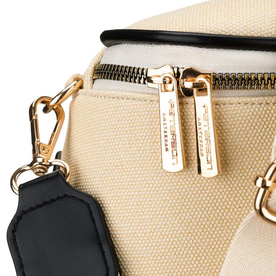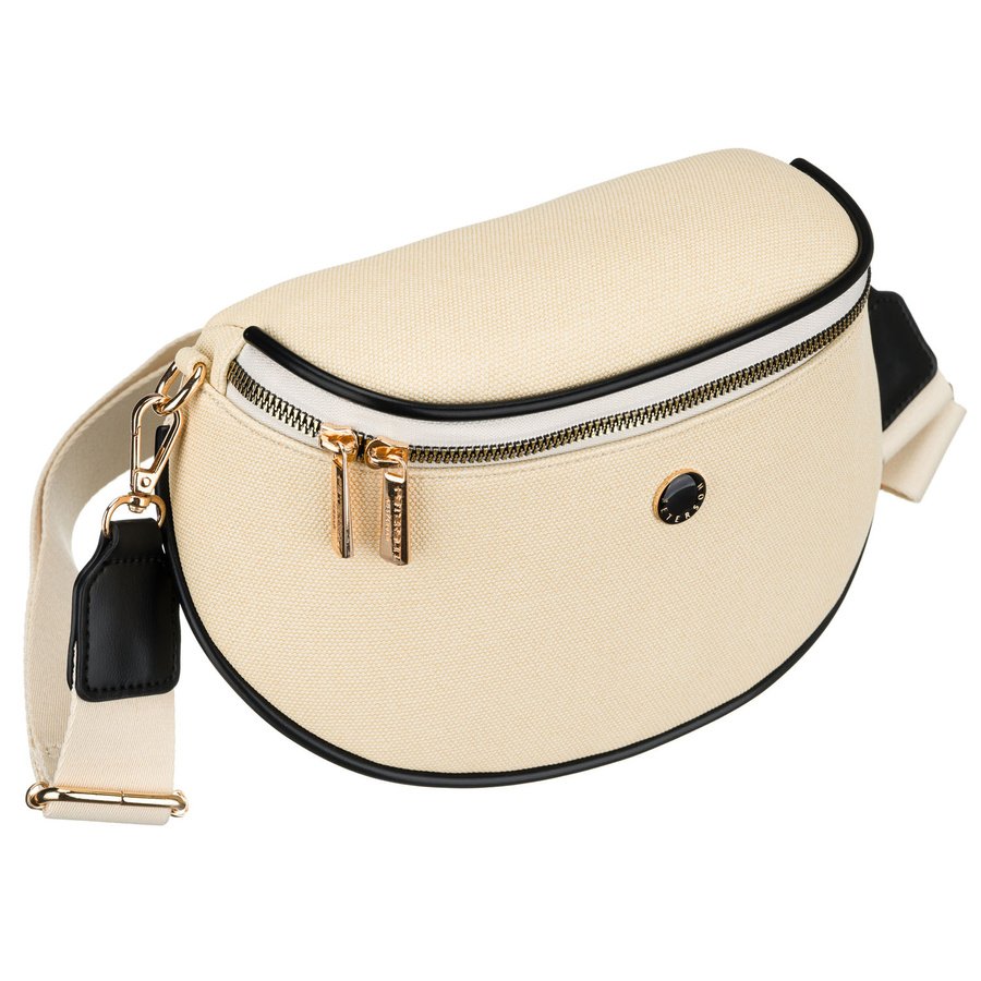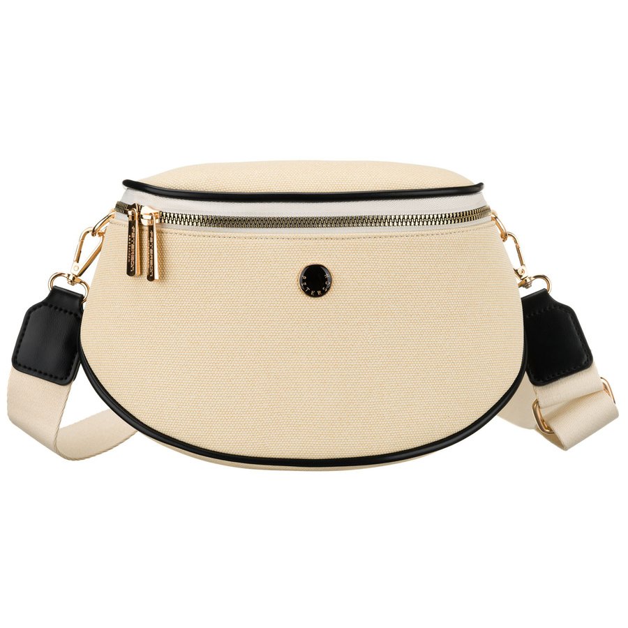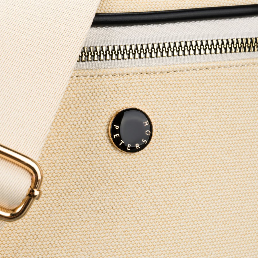 Saszetka damska w kolorze ecru z czarnymi elementami, wykonana z materiału syntetycznego – Peterson