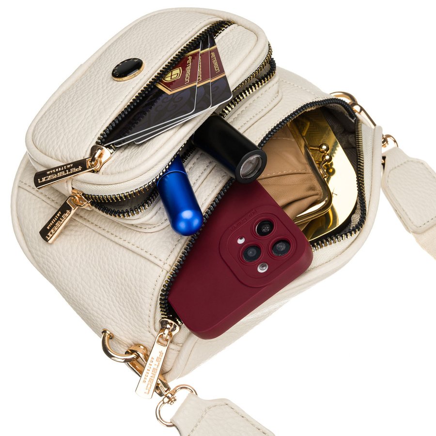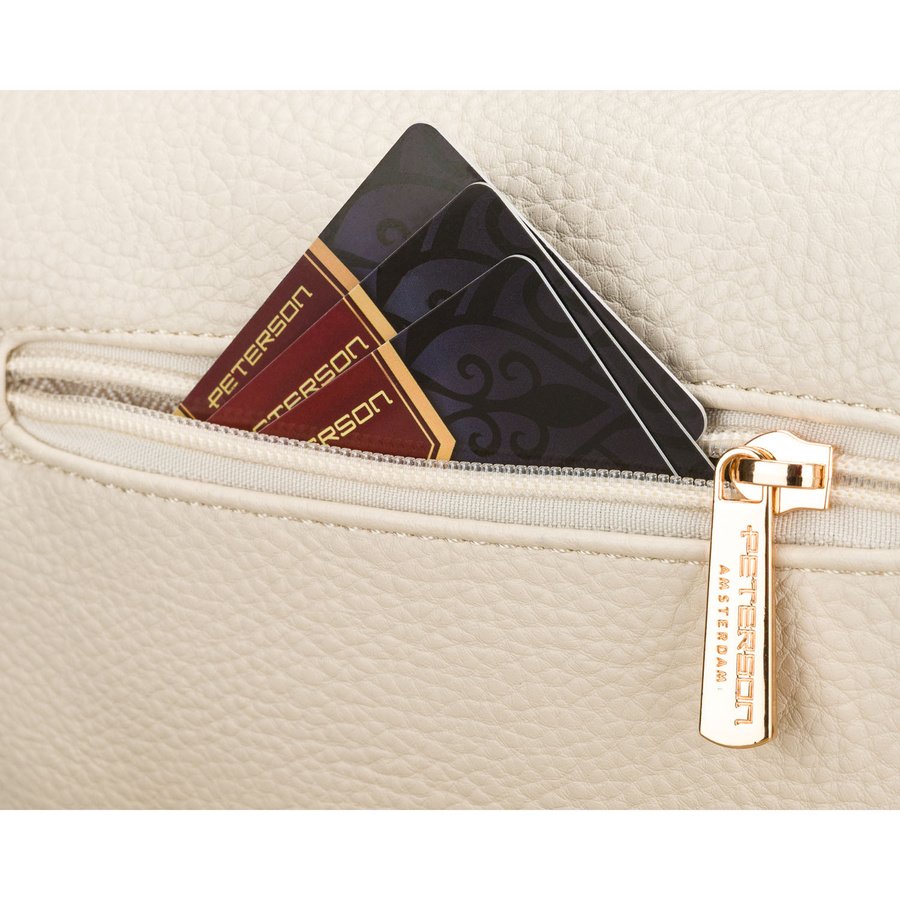 Saszetka damska wykonana ze skóry ekologicznej w jasnobeżowym kolorze – Peterson