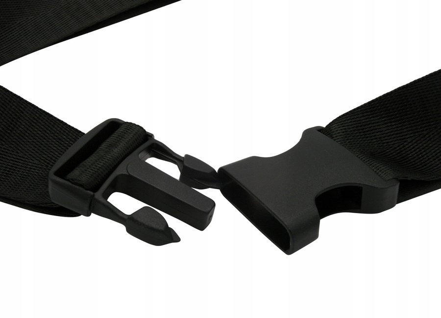 - Zawieszona na materiałowym pasku z możliwością regulacji jego długości.