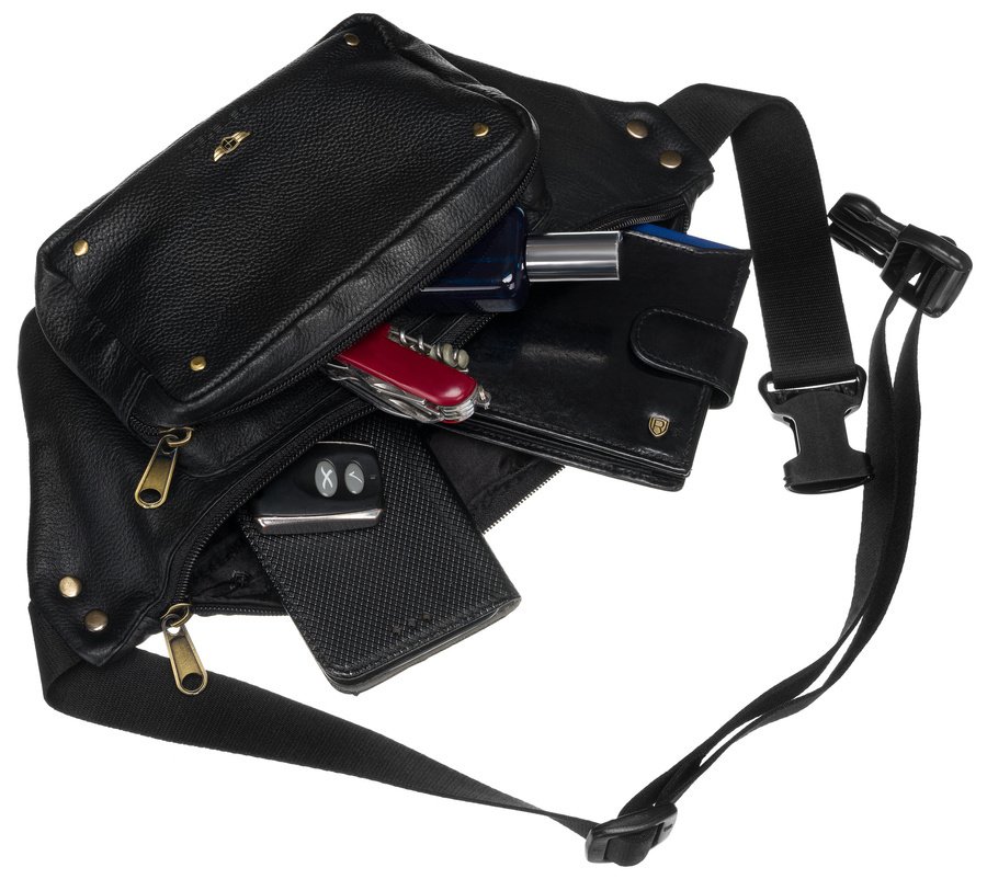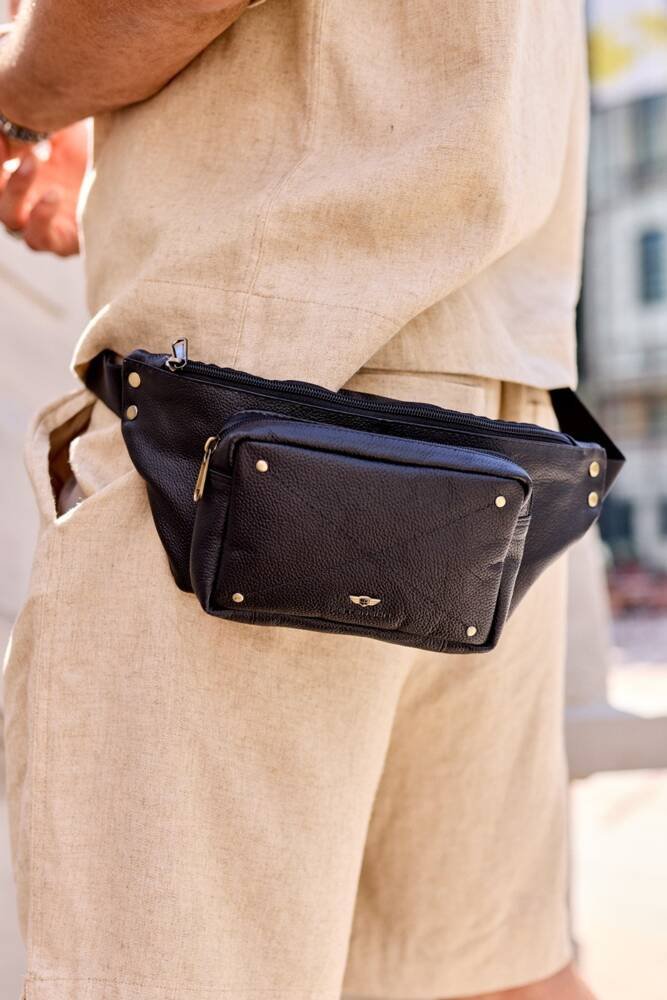 Skórzana saszetka na biodra z kieszeniami – Peterson